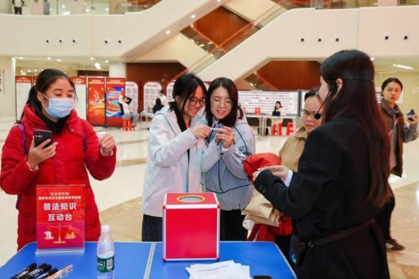 “您知道哪一天是国家宪法日吗?”“宪法赋予公民的权利有哪些呢?”活动现场,工作人员通过互动有奖答题、发放宣传资料等方式,向广大市民普及宪法知识。活动还设置主题互动打卡区、宪法知识展板、法律咨询台、签名墙等多元环节,营造浓厚宣传氛围,进一步增强广大群众的法治观念和法律意识,提高群众对宪法等相关法律法规的认识,引导广大群众自觉守法、遇事用法。据统计,此次活动共发放各类宣传资料600余份,接受法律咨询30余人次。